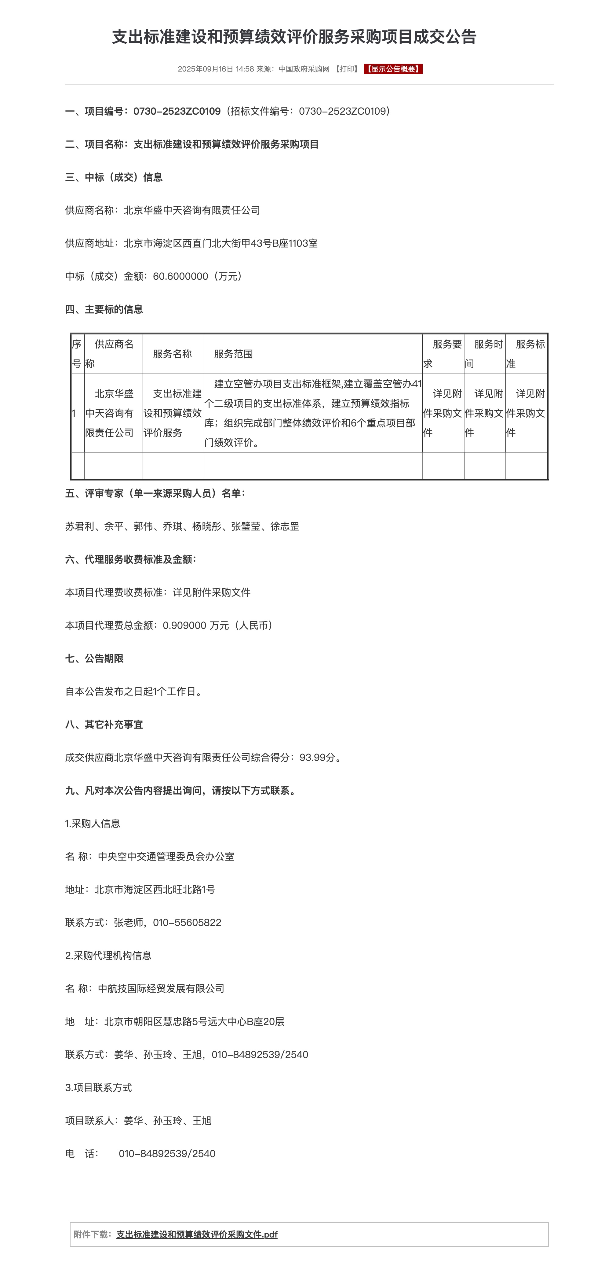 热烈祝贺:我公司中标【支出标准建设和预算绩效评价服务采购项目】